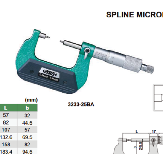 スプラインマイクロメータ 3233-25A・3233-25BA